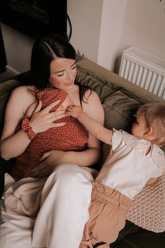 Beuteloberteil – Känguru-Oberteil – Cognac-Konfetti