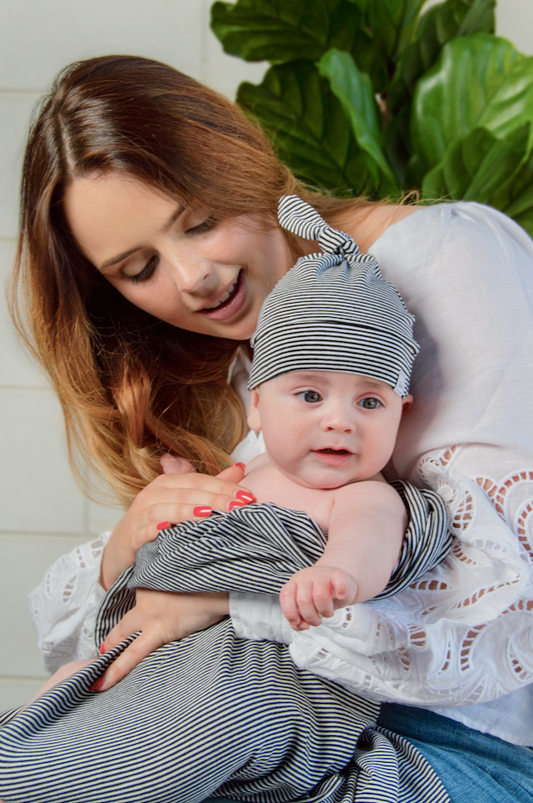 Neugeborenenmütze – Top-Knoten – Multi Black Stripe