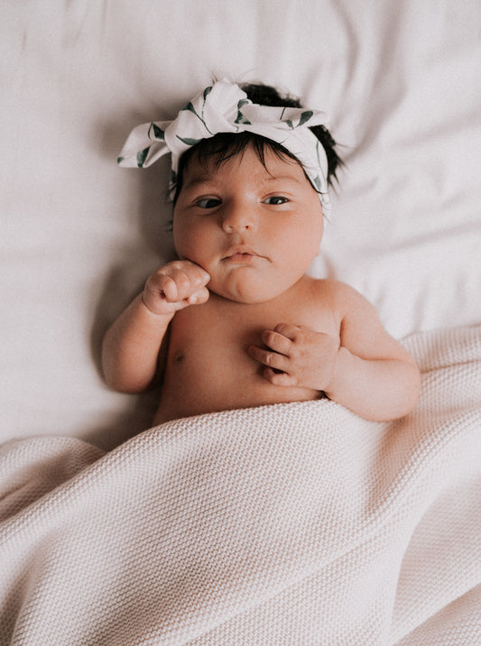 AusverkauftNeugeborenenmütze – Haarknoten – Minzblätter