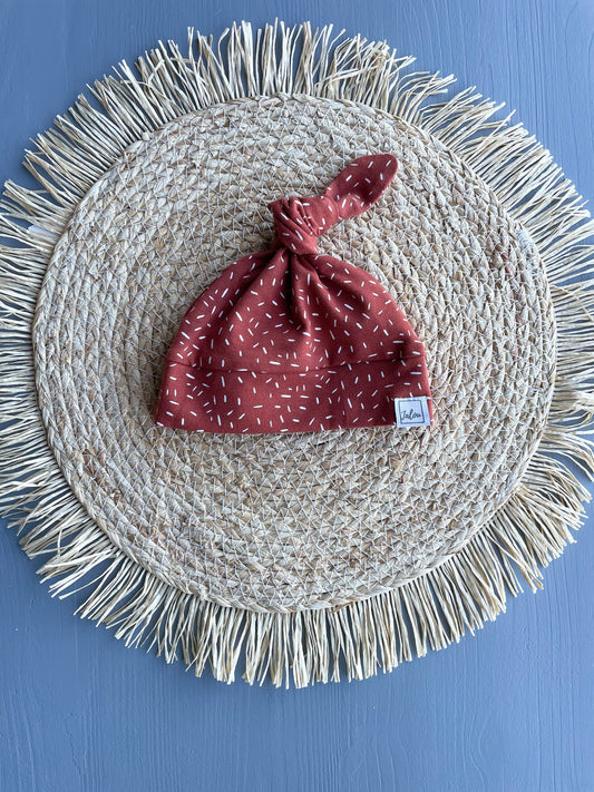 Neugeborenenmütze – Top-Knoten – Rusty Cognac