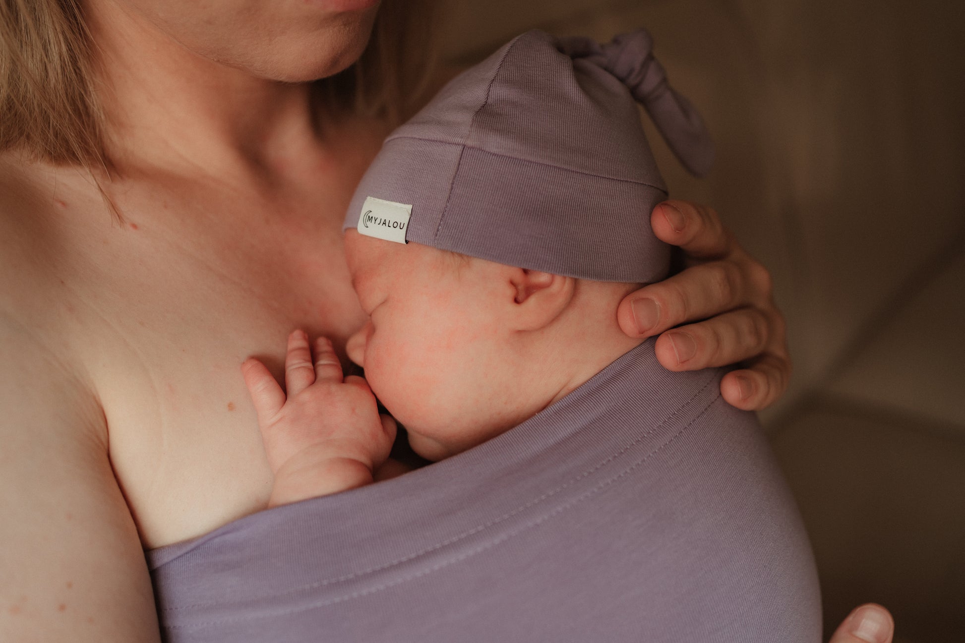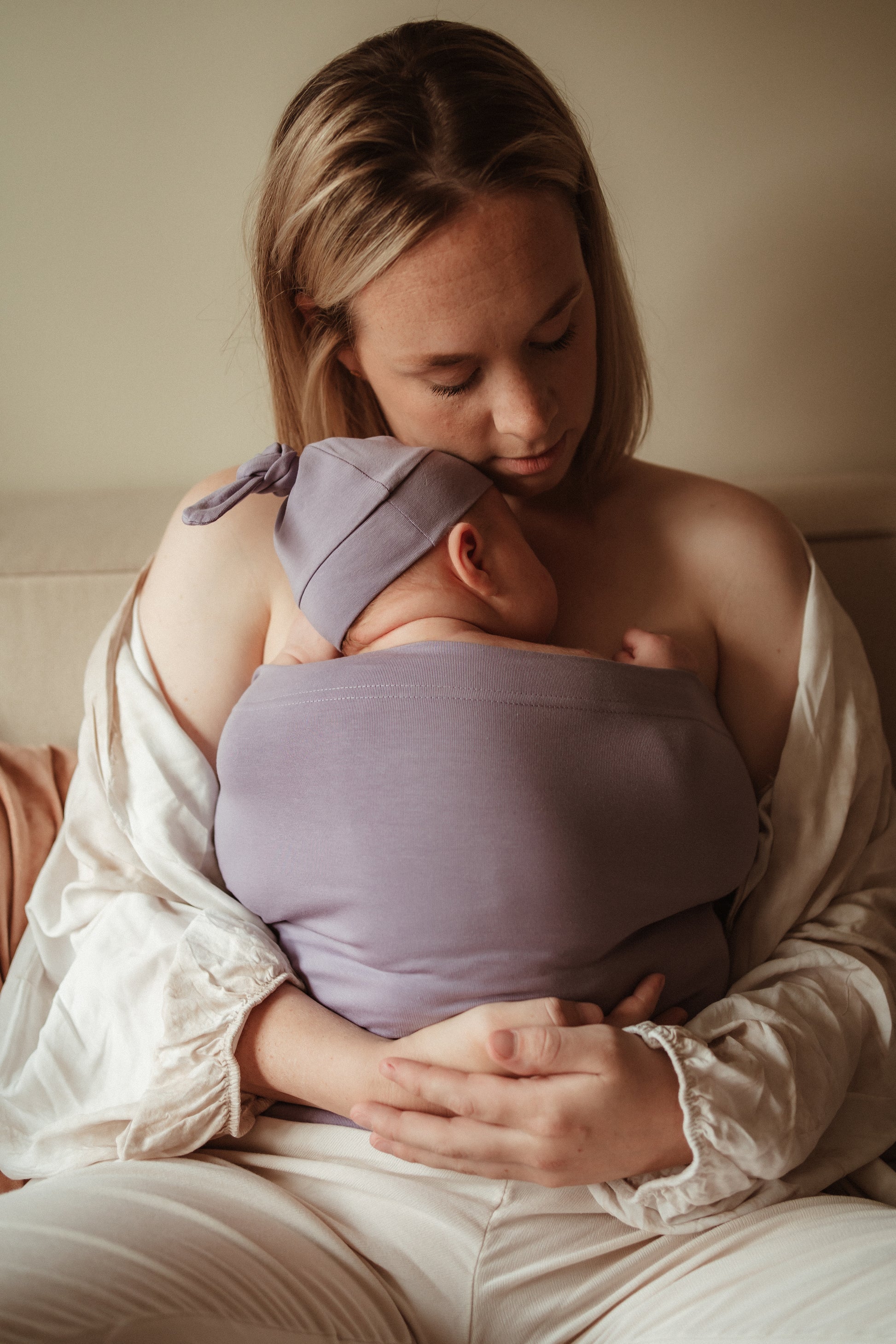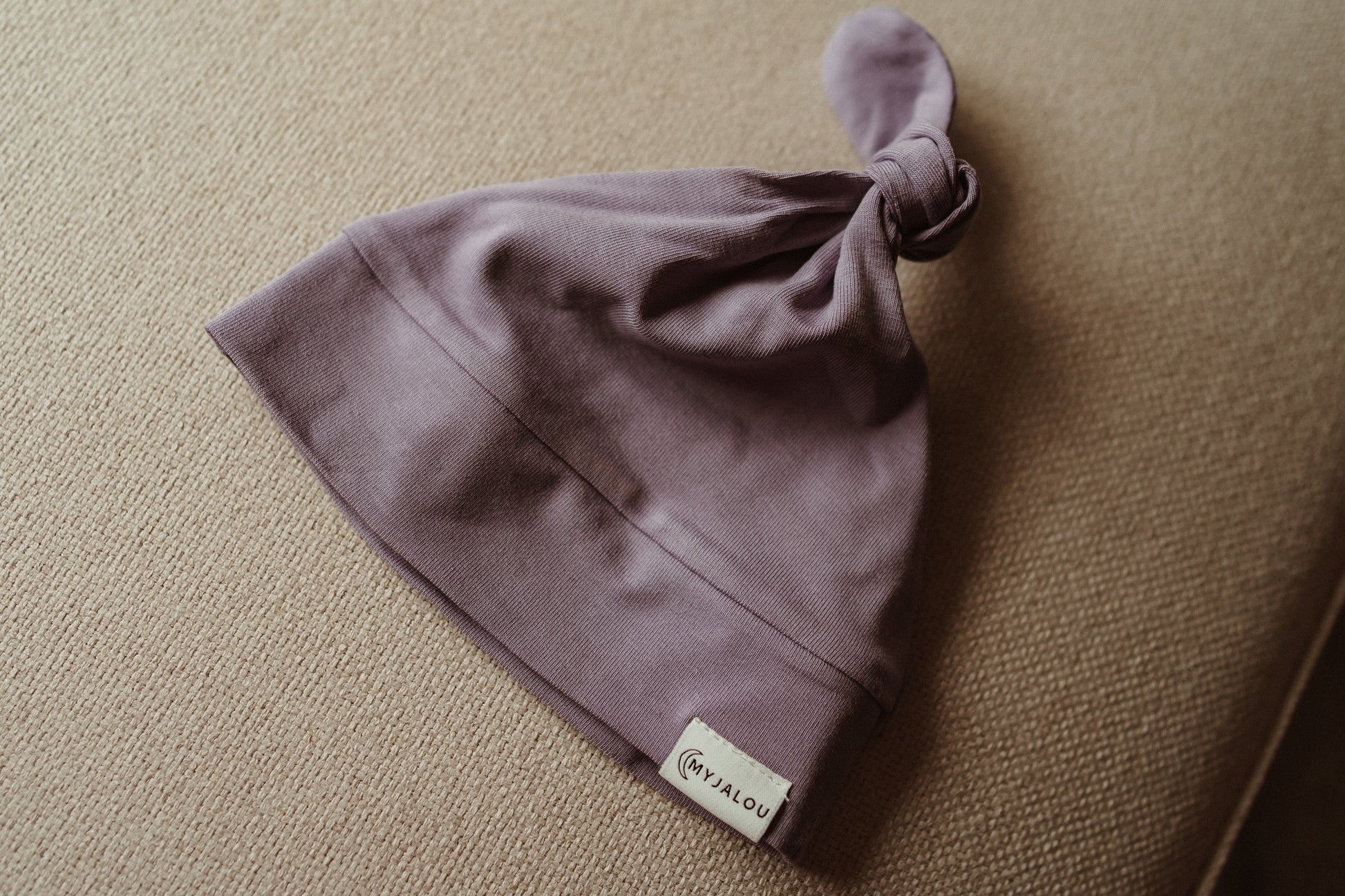 Neugeborenenmütze – Top-Knoten – Dusty Lilac